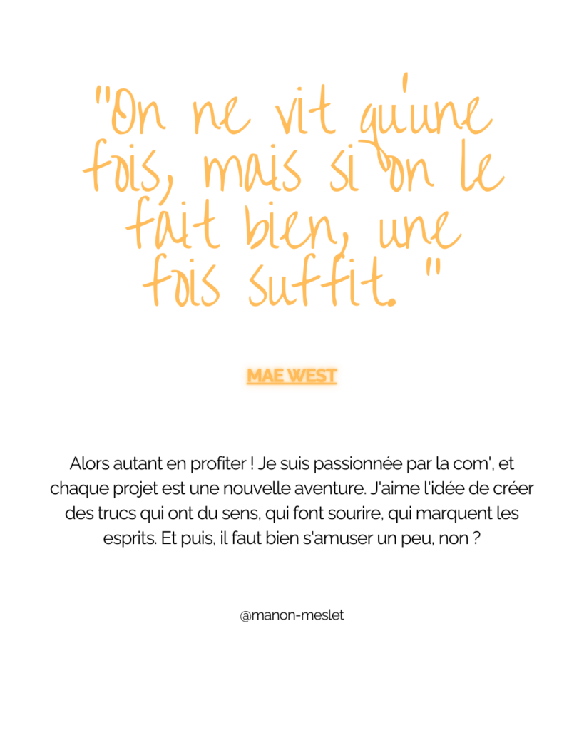 Ma vie est rythmée par des dizaines de citations qui me motivent au quotidien. En communication, l’importance des mots est cruciale. C’est pourquoi je retiens chaque citation que j’entends pour en faire des sources d’inspiration. Si vous avez besoin d’un coup de boost, découvrez mes citations motivantes, publiées au gré de mes inspirations !